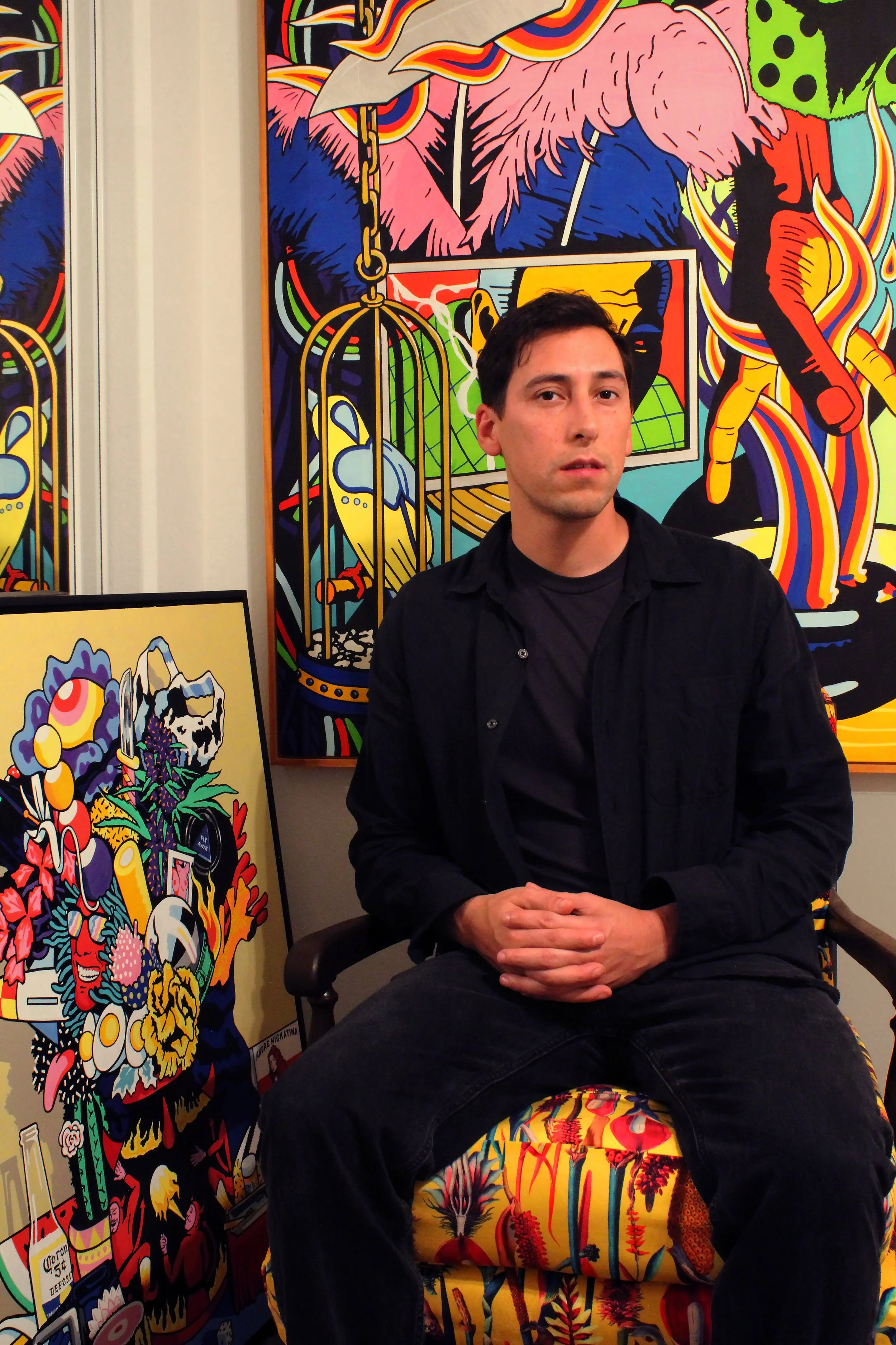 Robbie Giddens is a Los Angeles-born artist currently based in New Orleans, whose vibrant work reflects the chaotic energy of the modern condition. Drawing inspiration from suburban peccadilloes he explores themes of contrast, metaphor, perception and reality.
